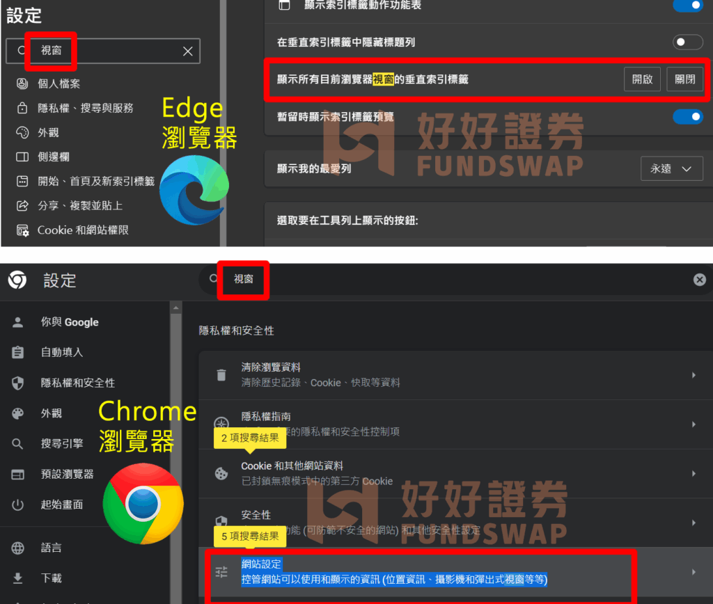 (2)在Chrome 瀏覽器 ,找到 「網站設定/彈出式視窗與重新導向」